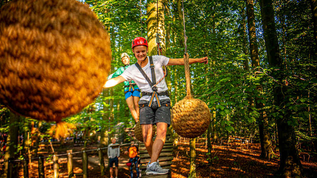 Unser Kletterpark befindet sich in einem wunderschön gelegenen Buchenwald nahe der Ostsee an der Eckernförder Bucht. Wagt euch auf wackelige Hängebrücken, schwingt euch von Baum zu Baum, klettert bis in die Baumkronen oder wagt den Sprung mit unserem BungeeJumperXL !