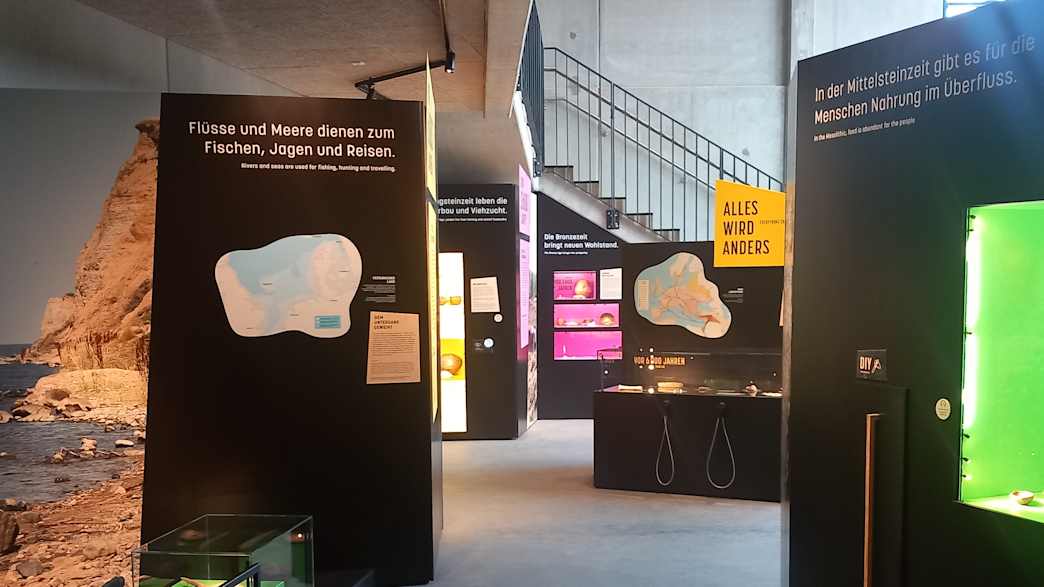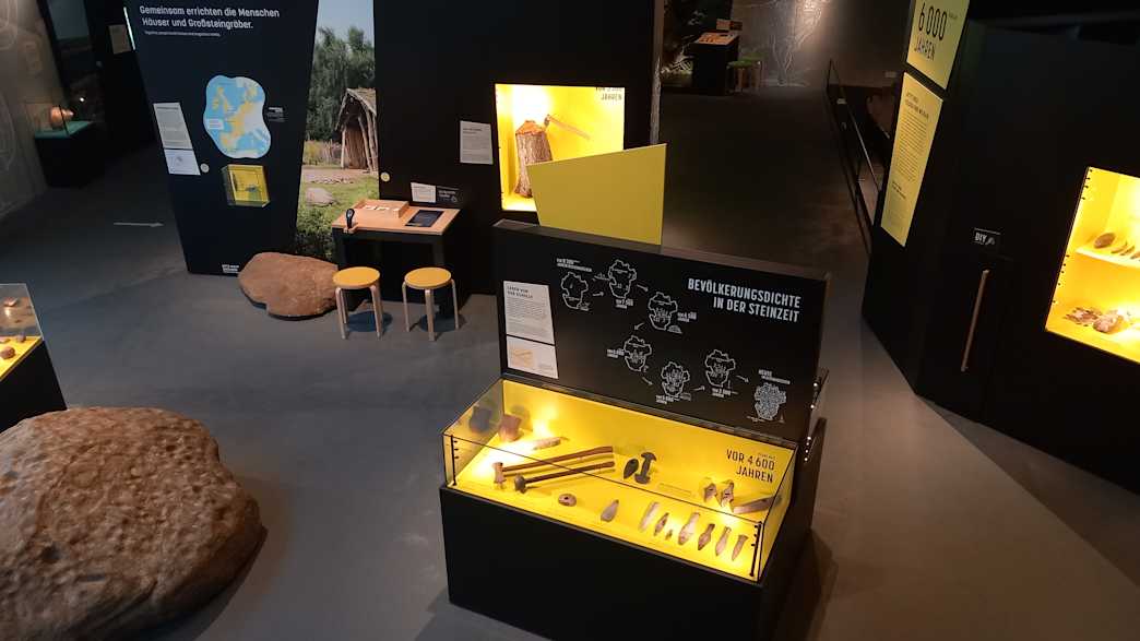 Die neue, auch für Kinder gestaltete Ausstellung zur Steinzeit zeigt als übergeordnetes Thema „Mensch und Umwelt“. Im Fokus der Ausstellung steht der Mensch, seine Arbeitswelt sowie die Eingriffe und Veränderungen des Naturraums – ein besonderer Schwerpunkt liegt hier auf den jeweiligen Innovationen der einzelnen Epochen. Es ist zu betonen, dass die originalen Funde und Objekte in der Ausstellung im Vordergrund stehen, da schon im Außenbereich des Steinzeitparks entsprechende Nachbauten vorhanden sind. Moderne Technik, digitale Medien und viele Mitmachstationen zum Ausprobieren gibt es aber ebenfalls in der Ausstellung.