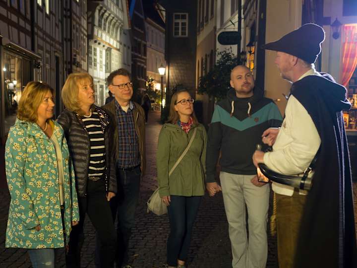 Weit geht der Blick über die Dächer der Stadt. Einsam hält der Türmer Wache, schaut aus, nach Feuer oder anderen Gefahren. Vieles hat er gesehen, so manches Geheimnis gelüftet und dennoch ist auch ihm einiges ein großes Rätsel geblieben. Besuchen Sie den Türmer auf seinem Posten und begleiten Sie ihn im Laternenschein durch die nächtlichen Gassen Hamelns.