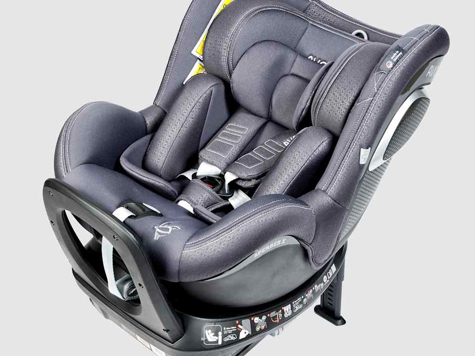 Einfach zu bedienender Isofix-Kindersitz, in dem Kinder bis etwa 4 Jahre auch entgegen der Fahrtrichtung gesichert werden können. Um den Einstieg zu erleichtern, kann der Sitz zur Seite gedreht werden. Eine Nutzung für Neugeborene ist zwar möglich, jedoch kann das Baby nicht im Sitz zum Fahrzeug getragen werden.