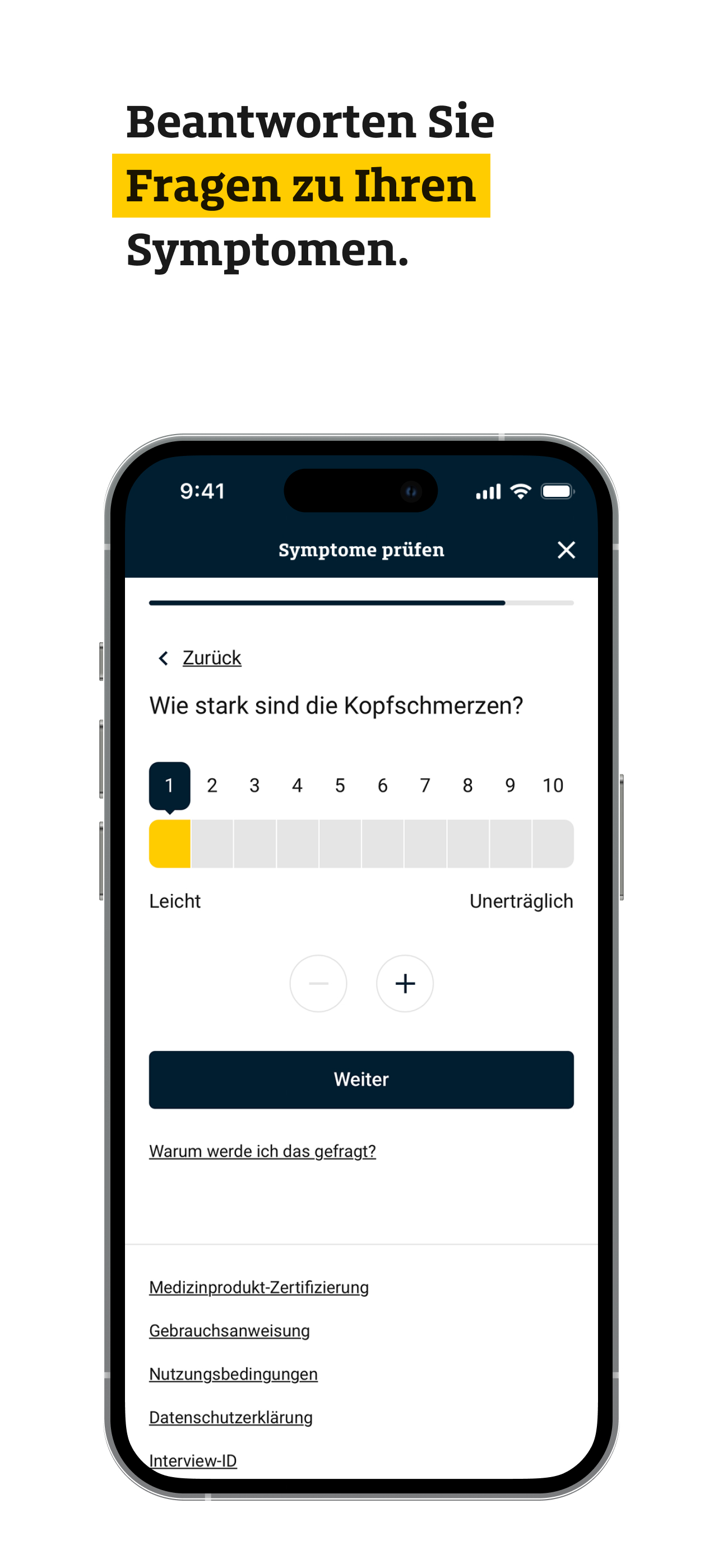 - Erste Einschätzung zu gesundheitlichen Problemen in wenigen Minuten ohne medizinisches Vorwissen